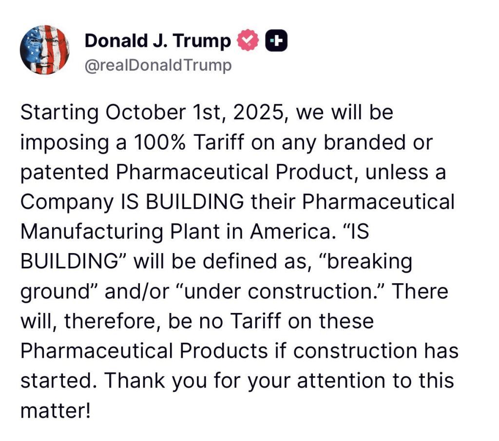 El presidente de Estados Unidos, Donald Trump, anunció este jueves una ofensiva arancelaria que pone en alerta a la industria farmacéutica mundial. A partir del 1 de octubre de 2025, los medicamentos de marca o patentados fabricados en el extranjero deberán pagar un impuesto de 100%, salvo que la compañía productora tenga en marcha la construcción de una planta en territorio estadounidense.
